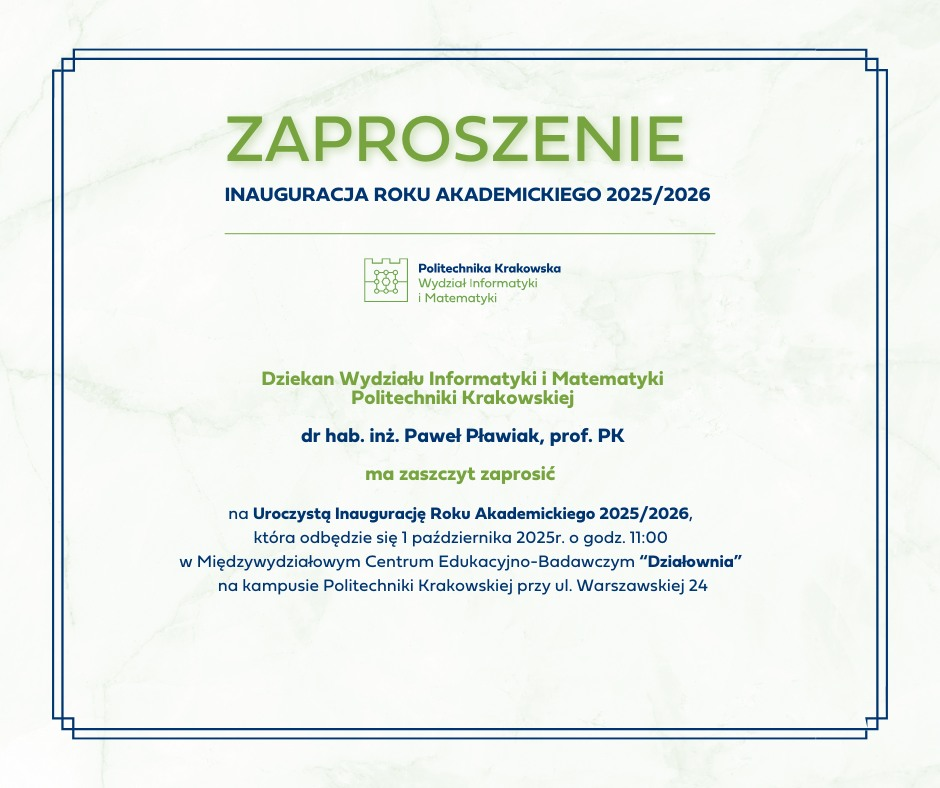 KOMUNIKAT nr 7 Dziekana Wydziału Informatyki i Matematyki Politechniki Krakowskiej im. Tadeusza Kościuszki w sprawie przesunięcia planowanych zajęć dydaktycznych w dniu 12 listopada 2025 roku