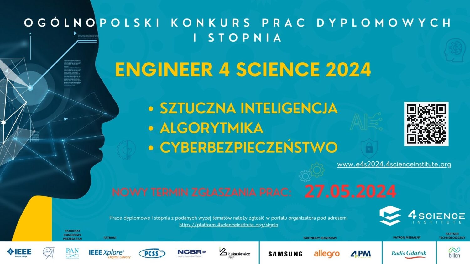Przedłużono do 27.05.2024. nabór do nowej edycji Ogólnopolskiego Konkursu Engineer 4 Science 2024 na najlepsze prace dyplomowe w Polsce, w trzech tematycznych dziedzinach: